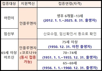 - 75세 이상 (1950년 12월 31일 이전 출생자) : 10월 15일 수요일부터