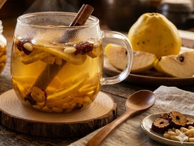목감기로 가래가 끓고 목도 아프다면 모과차도 좋습니다. 비타민C가 풍부해서 면역력을 높여주고 소량의 사포닌이 가래 완화에 도움이 돼요. 향긋한 향기 덕분에 기분전환에도 좋습니다.