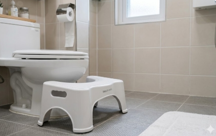 변기에 앉았을 때 무릎이 엉덩이보다 높게 올라오게 하세요. 목욕 의자를 발아래 두면 대장이 일직선으로 펴지면서 마치 고속도로 하이패스처럼 대변 배출이 쉬워집니다. 저도 이 방법으로 화장실에 앉아있는 시간을 줄인답니다.